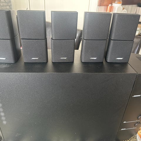 Bose Acoustimass 10 V är ett högtalarpaket med 5.1- ljud med kubhögtalare och en subwoofer för djup bas.
