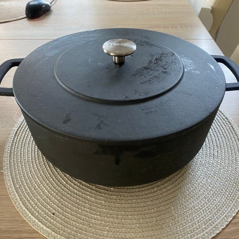 Oanvänd gryta. Som på bilden. Emaljerad.