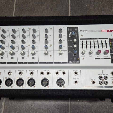 Motorola mixerbord för ljudutrustning. Utrustat med flera kanaler med individuella reglar för volym, panorering och equalizer. På ovansidan finns vridreglage för justering av frekvenser, nivåer och effekter samt skjutreglar för kanal- och mastervolym. Enheten har flera ingångar för mikrofoner och linjesignaler samt utgångar för anslutning till förstärkare eller inspelningsutrustning. Passar för ljudmixning i till exempel replokal, studio eller vid enklare livebruk.