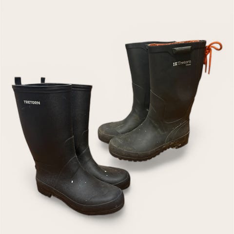 Säljer ett par klassiska svarta gummistövlar från Tretorn i smidig, låg Chelsea-modell. Lätta att dra på och av, perfekta för regniga dagar i trädgården eller på promenaden.