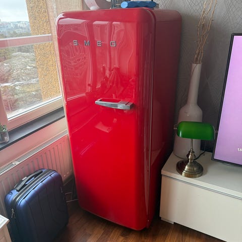 Röd SMEG-frys i 50-talsretro, nypris 15 000+ kr
