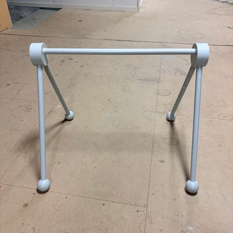 Stokke sängmobilarm i vit färg. Mobilarmen monteras på barnsäng eller spjälsäng med hjälp av klämfäste längst ned. Övre delen har fäste för att hänga en mobil eller andra lätta leksaker ovanför sängen. Tillverkad i hårt material med ledad konstruktion som gör att armen kan vinklas efter behov. Passar som tillbehör till barnsäng för att skapa upphängning för mobil eller dekorationer.