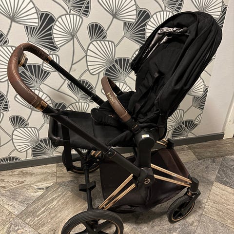 Säljer vår fina Cybex Priam Lux barnvagn i grått tyg med svart/roséfärgad ram. Vagnen är använd men i gott skick och fungerar som den ska.