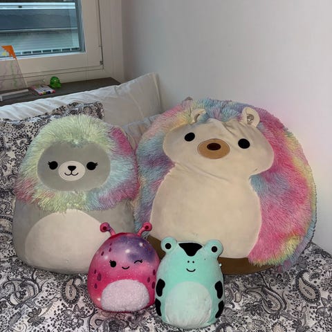 Squishmallows gosedjur samling med flera olika figurer i blandade färger och storlekar. Mjuka plyschdjur med olika motiv, till exempel fantasidjur, matfigurer och djurkaraktärer. Passar som mjukisdjur för barn eller som samlarfigurer för alla åldrar. Tillverkade i mjuk textil med fyllning som gör dem formbara och bekväma att krama. Säljs som ett set enligt bilderna.