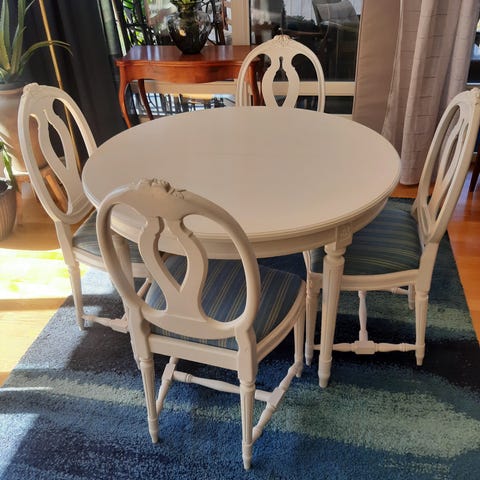 Stilren vit design som är lätt att matcha med olika stolar. Stabil konstruktion.