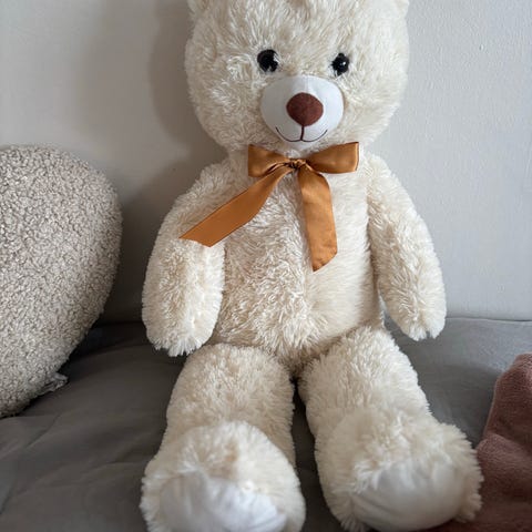 Fresh Kid gosedjur i form av en kanin. Mjuk plysch i beige färg, tillverkat i 100 % polyester. Kaninen har långa öron, broderade ögon och en bandrosett runt halsen. Märkt enligt EN71 och CE på etiketten. Passar som mjuk leksak eller som inredningsdetalj i barnrum.