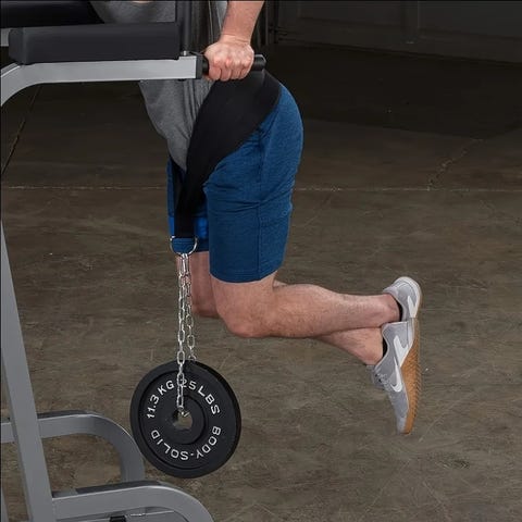 Gasp träningsbälte i svart läder med vit insida. Bältet har kraftig spänne i metall och flera justerbara hål för att passa olika midjemått. Bred och stabil utformning som ger stöd runt bålen vid styrketräning och tyngdlyftning. Passar för användning på gym och vid annan styrkebaserad träning.