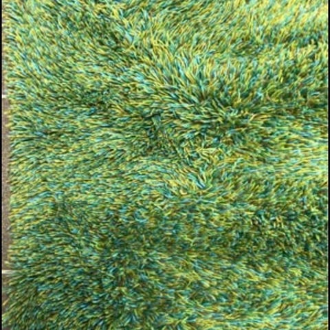 matta i flerfärgat mönster med inslag av rött, beige, grönt och andra nyanser. Mattan har en tät, strukturerad lugg på ovansidan och en vävd baksida. Enligt etiketten är den handgjord i Indien. Passar exempelvis i vardagsrum, hall eller sovrum som textil inredningsdetalj.