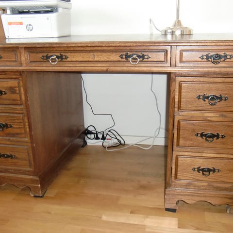 Stort skrivbord. Låsbara lådor. Tungt.