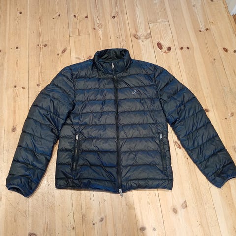 Gant jacka för barn i storlek 170 cm, unisexmodell. Jackan är svart och tillverkad i polyester. Modellen är vadderad med horisontella kanaler och har huva. Stängs med dragkedja framtill och har resår nedtill och vid ärmslut. Passar som ytterjacka för vardagsbruk i svalare väder.