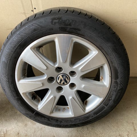 Det följer med bara 2 st original VW navkapslar.