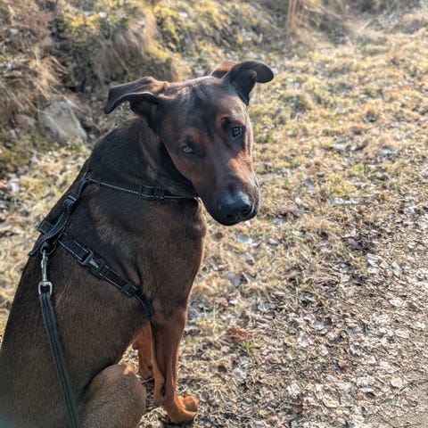 Dobermann tik Zoe 7 månader, har ingen stamtavla, föräldrarna har det. Hon är svenskfödd och har svenskt pass. Hon är rumsren. Har alla nya tänder. Kan göra kommandon, fot, sitta, ligga ner, sitta upp, stå och bli. Rör inte, varsågod, kom, gå väck, mat, in, ut, gå, kissa, bajsa. tager inte från kök bordet, Tränar lydighet 15 min. daglig. Springer lös i trädgården många gångar daglig. Van vid att vara inne, går runt i huset och ligger i soffan och gosar med mig. Har en egen plats på dagen när vi är ute och natt, där de två andra hundarna söver. Är van vid två andra hundar, stor fågel och barn. Visar intresse för spår, mentalt mycket balanserad. Van vid att gå i flock och ensam. Säljes, då jag har blivit för gammal och har fått dålig hälsa, bättre att hon kommer till någon, som vill träna och ge henne ett bra liv. Berätta om dig själv och hur hunden vill få det. Snäll hund och leken:-)
