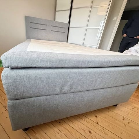 Mio kontinentalsäng med 2 resårbottnar 90*200 och 2 resårdelar i överdrag med dragkedja. Bonell, vändbart pocket fjädersystem.
