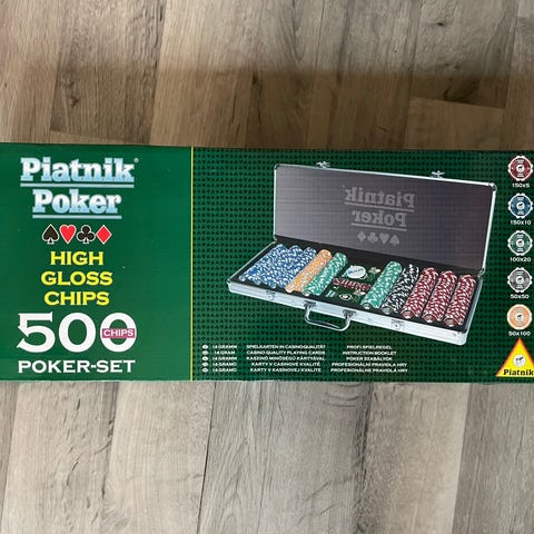 Pokerset i aluminiumväska med marker i olika färger samt spelkort och tärningar. Väskan är hård och har handtag för enkel transport och förvaring av innehållet. Passar för hemmabruk vid pokerspel och andra kortspel där marker används.