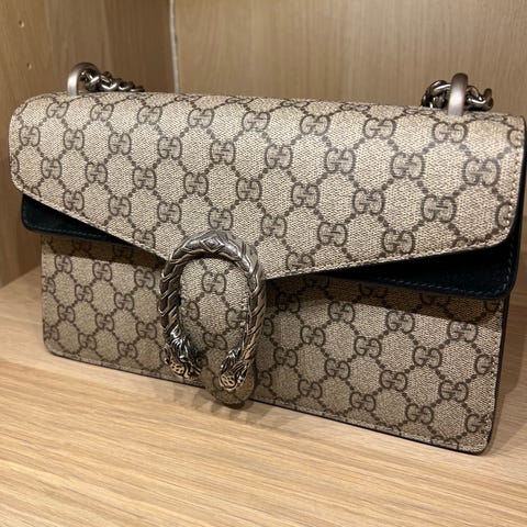 Säljer en vacker och ikonisk Gucci Dionysus i klassisk GG Supreme canvas med mockadetaljer och det välkända tigerhuvud-spännet.