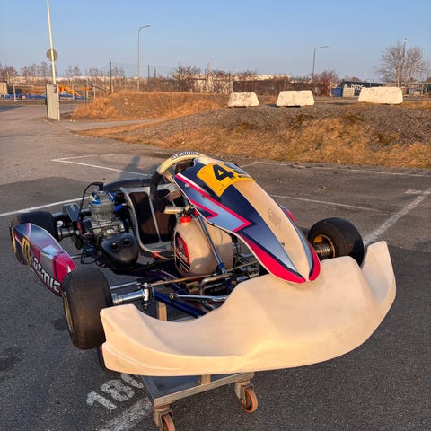 Som sagt ett rullande chassi. Just nu sitter en XL stol från en hyrkart i den men finns en mindre stol som följer med.