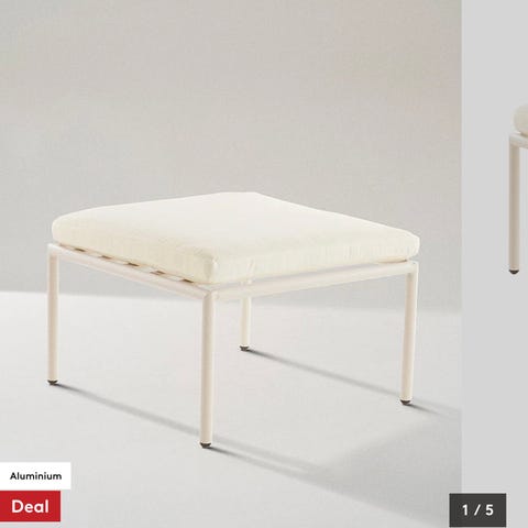 Soffa i svart metall med grå sittdyna. Möbeln har en bredd på 158 cm, höjd på 68,5 cm och ett djup på 75 cm. Sitthöjden är 35 cm och den maximala belastningen är 190 kg.