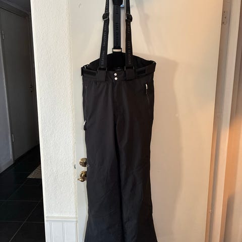 Quiksilver skidbyxor för barn i storlek 164, unisexmodell. Byxorna är svarta och tillverkade i polyester. De har justerbar midja med kardborre, bälteshällor och flera fickor med dragkedja. Material och utformning är anpassade för användning vid skidåkning och andra vinteraktiviteter.