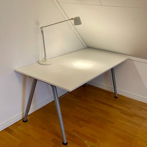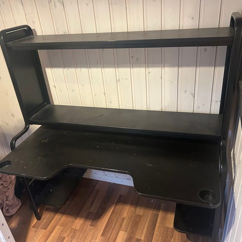 Hej säljer mitt skrivbord, det är en ikea huvudspelare nypris 1299kr. Bordet är i använt men bra skick, några små repor etc men generellt är det ett fint bord. Stort och rymligt för gaming/kontor med flera skärmar, dator på bordet etc..