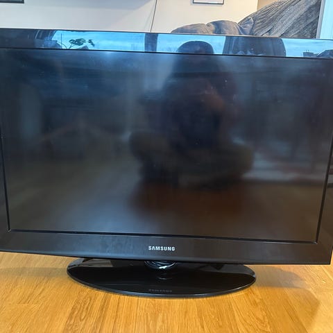 Philips TV för hemmabruk. Platt skärm med bordsstativ, lämplig för placering på tv-bänk. Utrustad med HDMI-anslutning enligt märkning på baksidan. Vit baksida med strömanslutning på sidan. Passar för anslutning av externa enheter som digitalbox, spelkonsol eller mediaspelare via HDMI. Exakt tumstorlek och modellbeteckning framgår av etiketten på baksidan av tv:n.