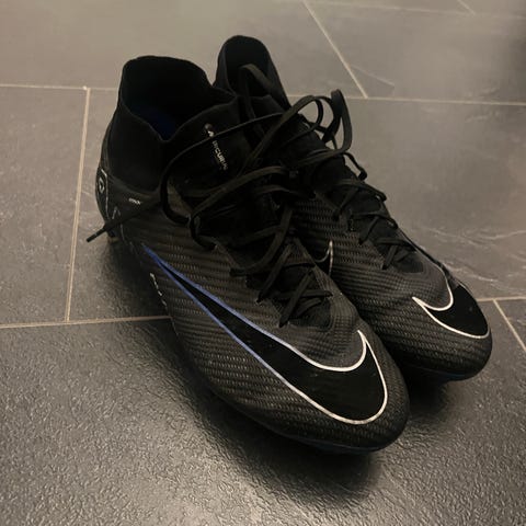 Nike Mercurial fotbollsskor, svarta, storlek 37,5. Skorna har mellanhög strumpa med snörning. Passar för fotboll eller annan inomhusidrott.