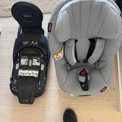 BeSafe iZi Modular RF X1 bilbarnstol i storlek 18. Bilbarnstolen är bakåtvänd och monteras på en bas med isofix-fästen. Sätet har justerbart huvudstöd och intern 5-punktssele. Klädseln är i mörk färg och vadderad för ökad komfort. Passar för barn inom storleksintervall 18 enligt BeSafes rekommendationer. Stolen kan användas i bilens baksäte och är avsedd för transport av barn i personbil enligt gällande säkerhetsföreskrifter.