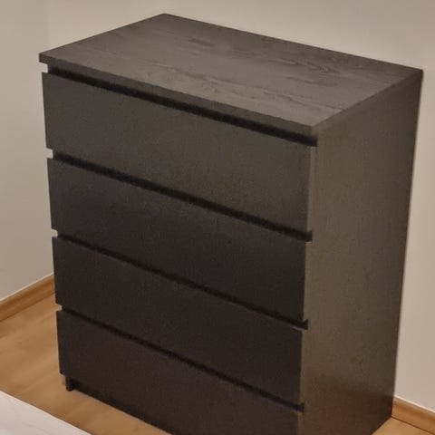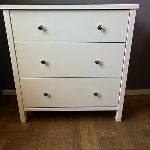Malm byrå från IKEA med 3st lådor och vit glasskiva ovanpå, finns i centrala Enköping 400 kr