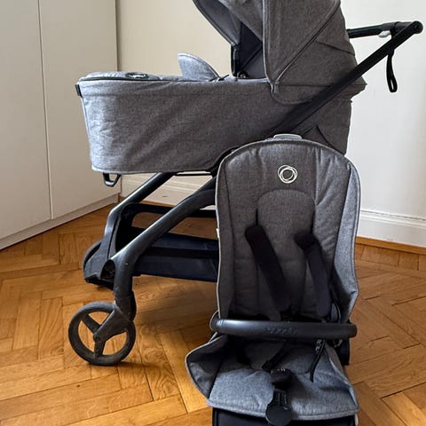 Myket fint skick, inköpt Feb 2024 med garanti till Feb 2028, ståbräda kan köpas till för 1000 kr, vagnen har två sittdelar, en liggdel, sidoväska och två regnskydd.