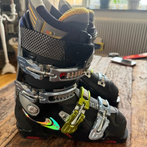 Tecnica sk pjäxor med sulmått 285 mm (325 mm yttre längd). Pjäxorna är svarta med röda och silverfärgade detaljer och flera justerbara spännen i metall. Passar för alpin utförsåkning med standard alpina bindningar. Lämpliga för vuxen åkare beroende på fotstorlek i förhållande till sulmåttet.