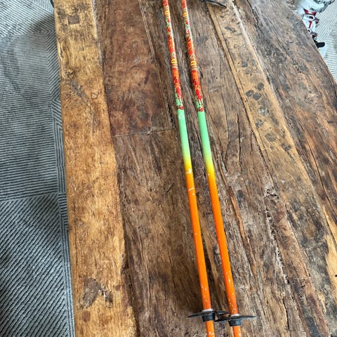Slalomstavar K2 för barn med längd 100 cm. Stavarna är orange med mönster och har handtag med handledsremmar. Som nya.