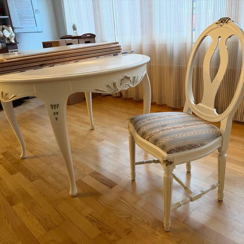 Matbord med två inläggsskivor max längd 234 cm
