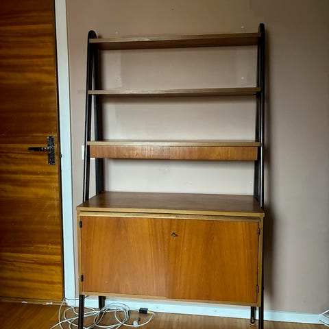 Stringhylla 60 tal med skåp och låsbara lådor.