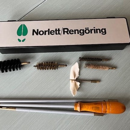 Tre uppsättningar läskstänger kal 12 & kal 6,5-9,3, kal 12 & kal 7,62 och kal 5,56. 12 buntar läsklappar.