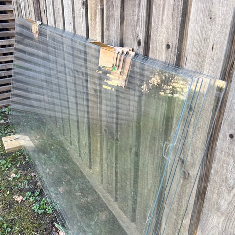 Glaset är i gott begagnat skick (ca 20 år gammalt). Den rejäla tjockleken på 6 mm ger en mycket stabilare och mer hållbar konstruktion än vanligt 3–4 mm växthusglas.