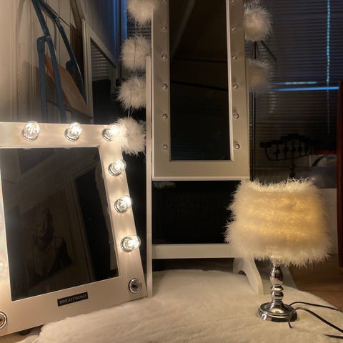 Perfekta paketet till ett flickrum. Liten plast blomma, rosa ljus lampa, mobilhållare.