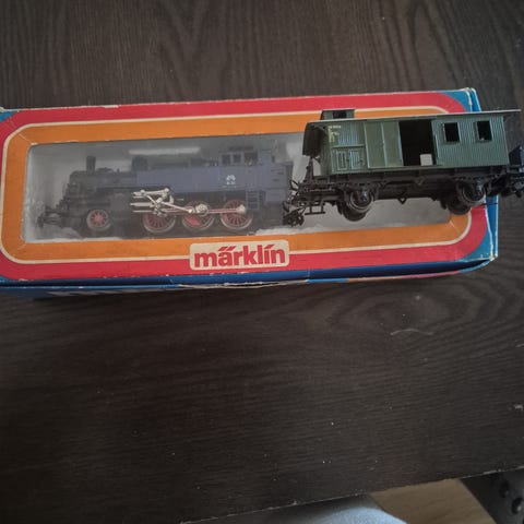 Märklin lastbil modellbil i rött och grönt med beige presenning med Märklin-logotyp på sidorna. Modellen föreställer en äldre lastbil med öppningsbar dörr och detaljerad hytt. Fordonet står på originalkartong med illustration av samma lastbil. Lämplig som samlarobjekt eller prydnad i modellmiljöer.