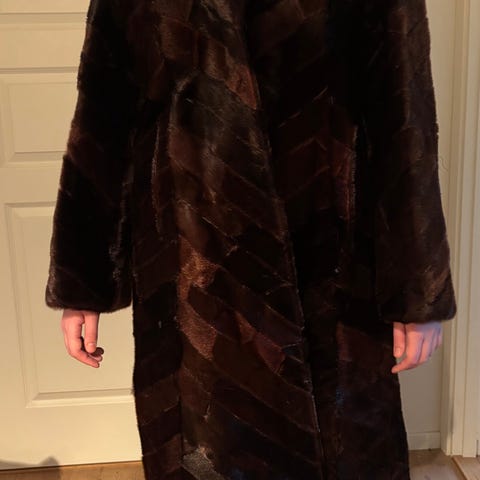 En tidlös och elegant päls med vacker struktur och färgskiftningar. Perfekt för dig som uppskattar äkta vintage och kvalitetshantverk.