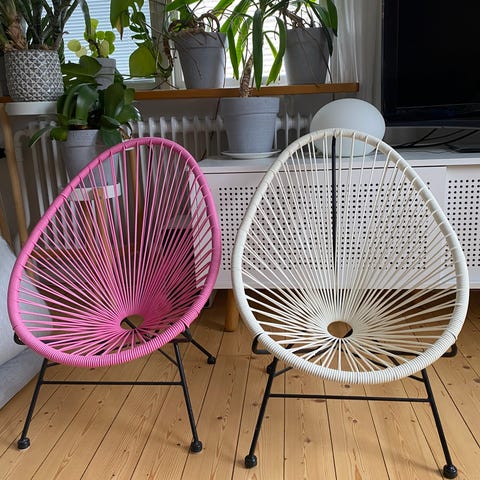 IKEA barnstolar i rött trä. Stolarna har rak rygg med utskurna figurer i ryggstödet och stabila ben. Passar som sittplatser vid barnbord i lekrum, barnrum eller kök. Priset kan förhandlas