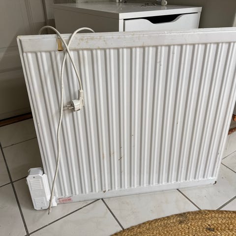 Vit radiator/oljefylltelement från Gnosjö. Radiatorn är avsedd för väggmontering och har anslutningskabel för 230v. Passar för uppvärmning av inomhusutrymmen där ett smalt långt element behövs. Materialet är lackerad metall i vit färg.