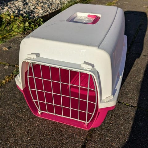 Transportbur för katt eller liten hund plast vit grå