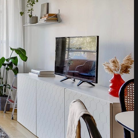 Totalt nypris: 3 795kr (baserat på TV-bänk, dörrar, gångjärn, hyllplan, ben och stödben)