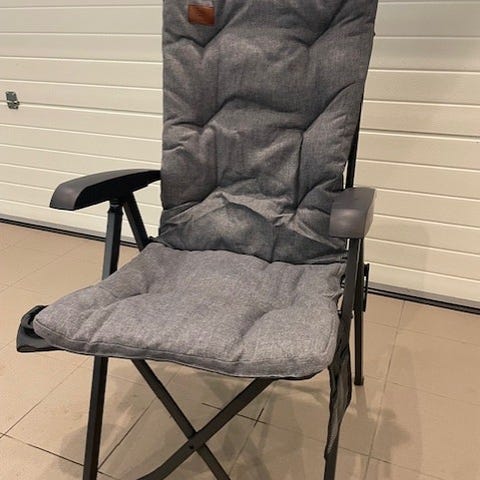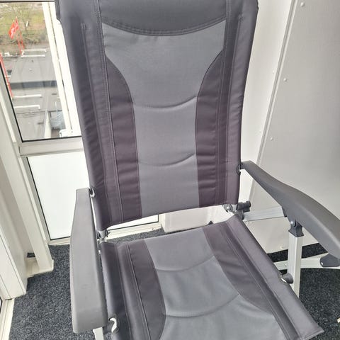 2 st Isabella Loke campingstolar med låg rygg i mörkgrått tyg.