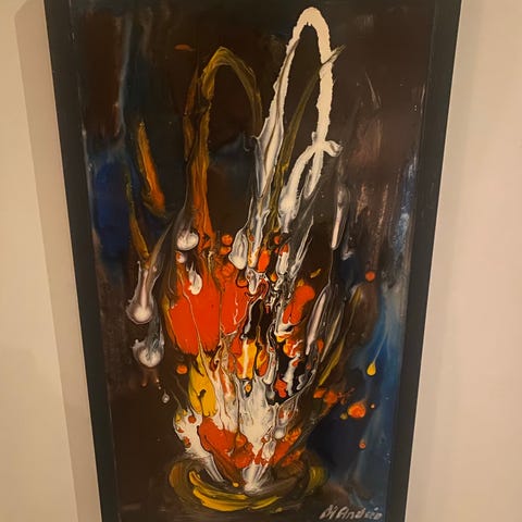Abstrakt tavla lila och vit