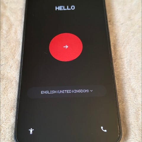 Nothing Phone (1) i fortfarande bra skick. Telefonen har några sprickor på baksidan, men den påverkar inte funktionen alls.