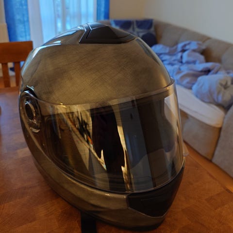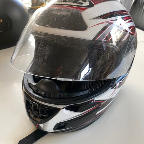 Den lilla hjälmen 120 kr. Verkar fattas en ventil baktill, se bild.