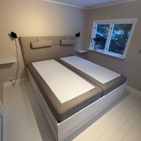 Brimnes sängstomme 160cm med förvaring samt madrass
