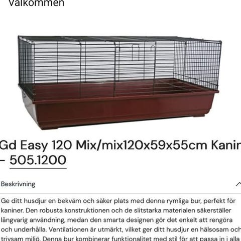 Säljer en kaninbur i storlek 120x59x55 cm.