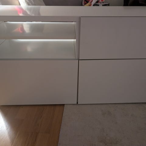 Ikea bestå TV-möbel i använt skick. Några svarta märken på ena lådan, se bild.