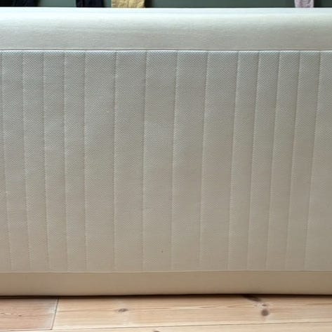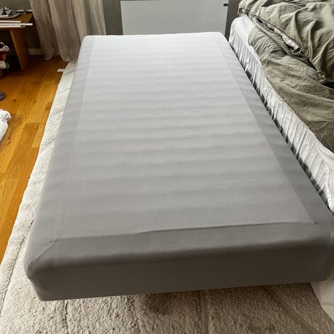 IKEA Sultan resårbotten i vitt tyg. Ben i metall. Rök- och djurfritt hem. Stått i gästrum. Säljes utan bäddmadrass.