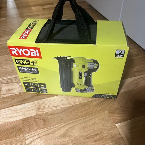 Ryobi One+ 18V spikpistol 18 gauge. Batteridriven spikpistol för 18 gauge-spik, kompatibel med Ryobi One+ 18V-systemet. Levereras i originalförpackning enligt bild. Lämplig för olika typer av snickeri- och inredningsarbeten där precisionsspikning behövs.